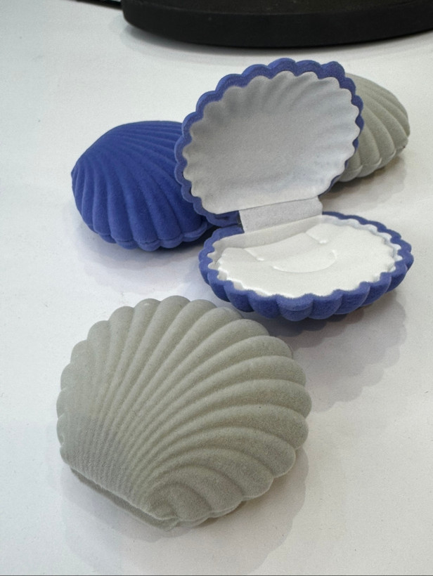 جعبه کادویی صدف ابی و طوسی با روکش مخمل
