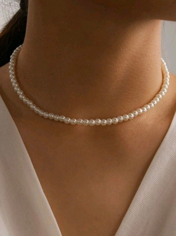 گردنبند مروارید سفید وارداتی بالاترین کیفیت و پایین ترین قیمت با ضمانت رنگ و تحویل درب منزل طول گردنبند ۴۵ سانت مطابق عکس